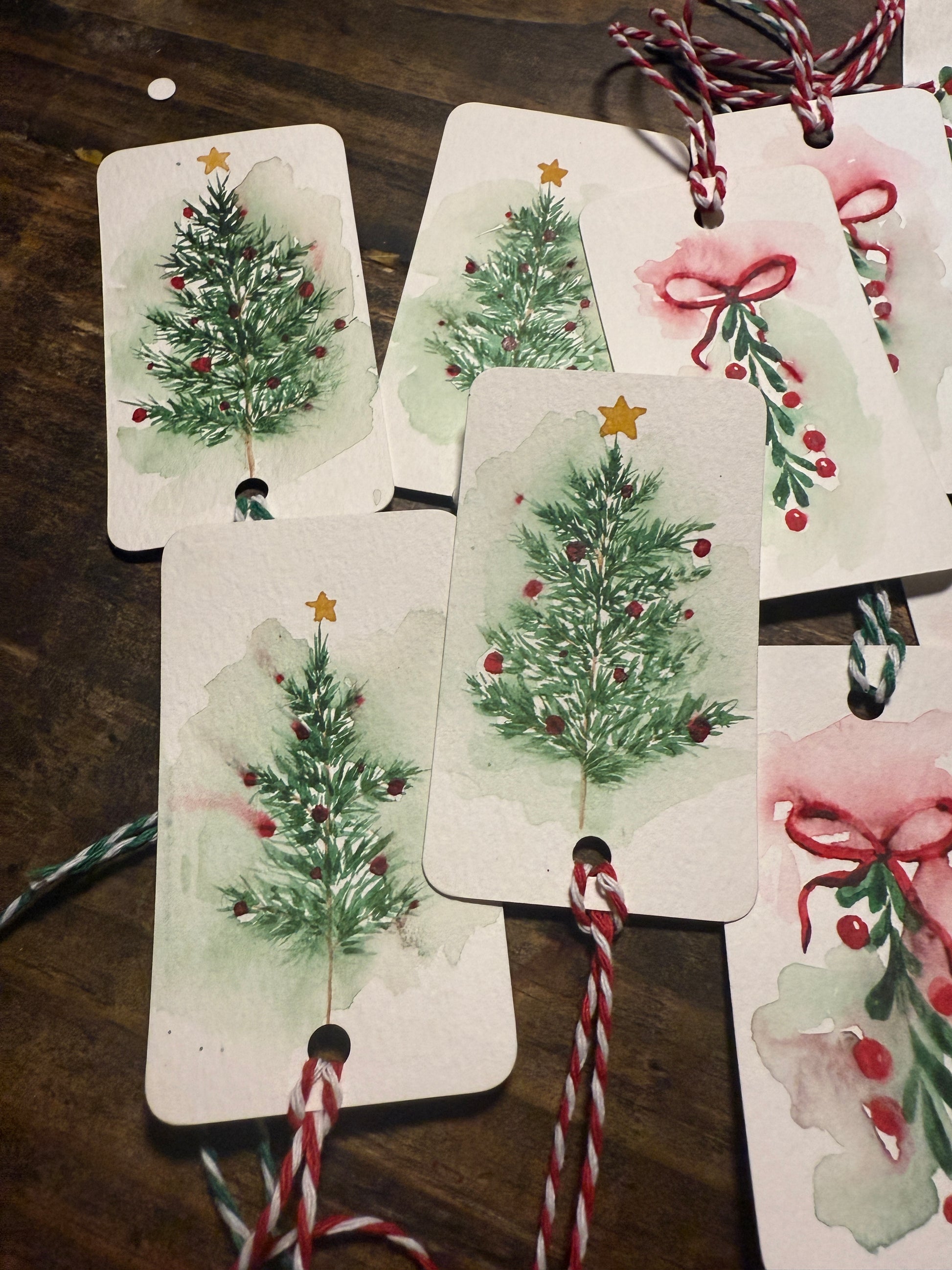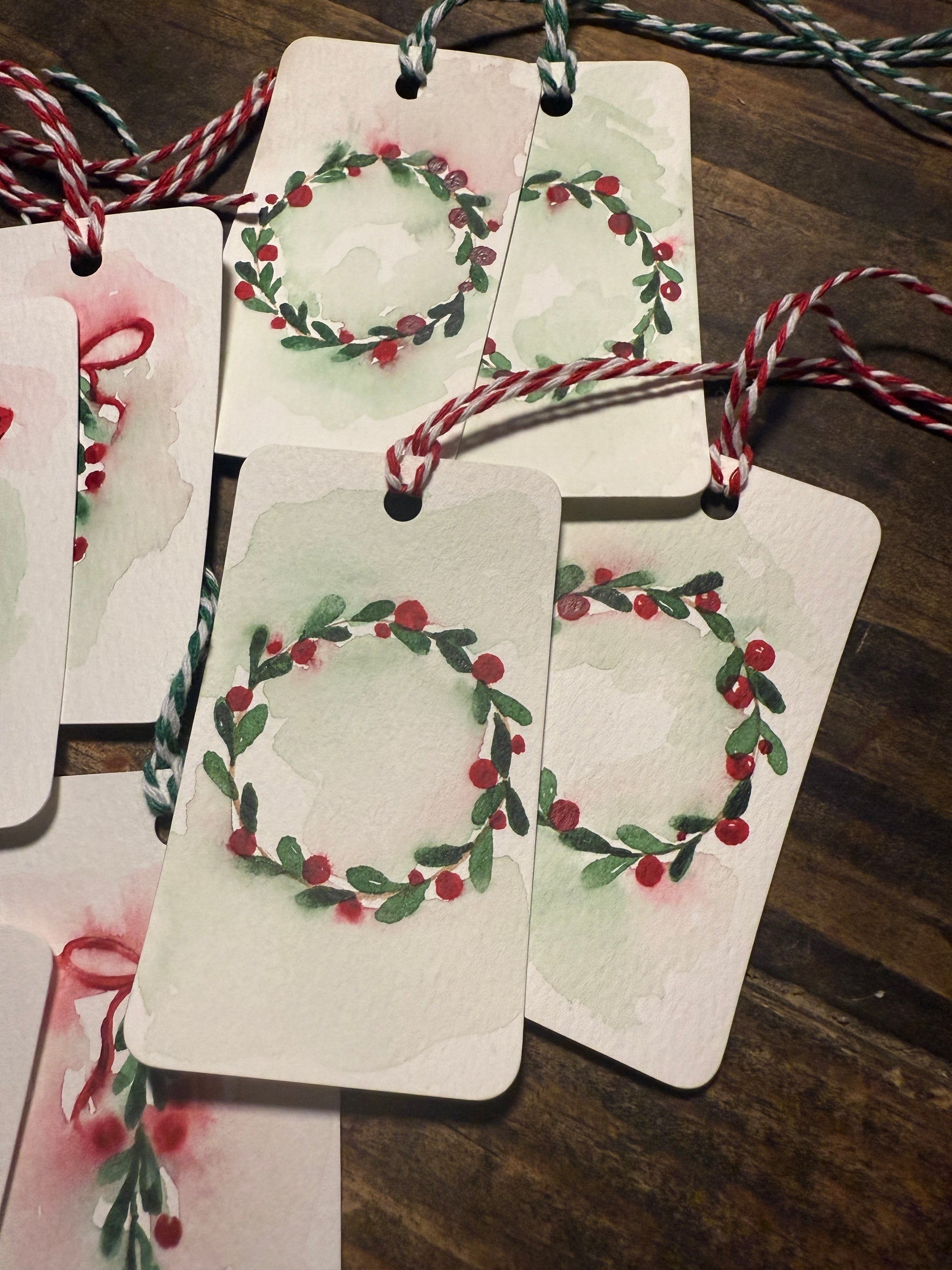 Set of 12 hand painted, original artwork Christmas Gift tags